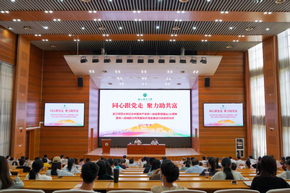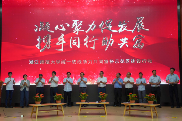 同心跟党走,聚力助共富。7月2日上午,浙江师范大学纪念中国共产党统一战线思想提出100周年暨统一战线助力共同富裕示范区建设行动启动仪式在行政中心报告厅举行。省委统战部二级巡视员杨卫敏,浙师大党委副书记邵国平,校党委委员、组织部、统战部部长吕迎春,金华市委统战部常务副部长邵国龙出席活动。