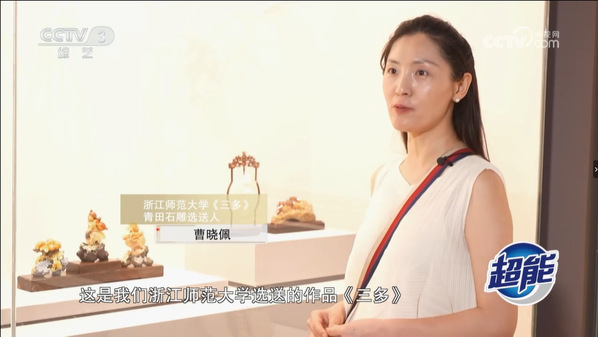 6月17日,央视综艺频道“文化十分”栏目播发“文化热点 非遗传承人研修培训计划十年成果展开幕”。浙江师范大学《三多》青年石雕选送人曹晓佩在接收节目记者采访。
