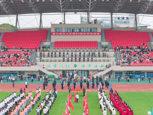 10月24日上午,浙江师范大学第51届田径运动会在东田径场开幕。国旗护卫队、彩旗方队,裁判员队伍与各学院代表队陆续入场。各学院别出心裁,以创意无限的表演献礼70周年校庆,展现浙师风采。激昂乐章破空响,浙师学子气宇轩昂。步伐铿锵,踏出浙师气场;英姿飒爽,以活力燃动整个赛场。