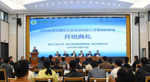 10月31日,由浙江工业大学、浙江省应急管理学院、浙江师范大学共同承办的浙江省第五期化工安全复合型人才高级研修班在浙江师范大学开班。省应急管理厅副厅长陈三强,浙江师范大学副校长朱毅峰,应急管理部研究中心学术委员会主任贺定超,应急管理厅危化处处长邹平等出席开班仪式。