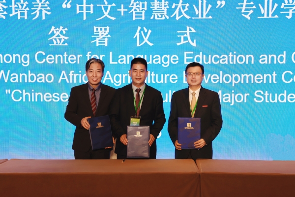 大会期间,邱利民代表学校,与教育部语合中心党委书记、主任郁云峰、万宝非洲农业发展有限公司董事长丁松签署三方协议,联合设立“莫桑比克智慧农业国际中文教师奖学金”。项目旨在为非洲农业现代化培养既懂中文、又掌握先进农业技术的本土化人才,将进一步拓展我校国际中文教育工作的外延。