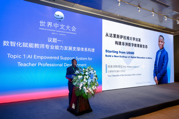 由教育部语合中心主办,浙师大承办的大会平行论坛“国际中文教师数字素养与能力提升”成功召开,教育部中外语言交流合作中心副主任于天琪、塞浦路斯教育部常务秘书乔治·潘特利,英国、意大利、巴西等6国代表发言,100多位参会代表出席。坦桑尼亚达累斯萨拉姆大学校长、孔子学院理事长威廉·阿南基瑟(William Anangisye)主持论坛并发言。他指出,将以达累斯萨拉姆大学孔子学院为平台,推动与我校建好“中非数字教育区域合作中心”,携手打造“汉教英雄会”非洲地区教学技能交流大赛等品牌项目,共同构建面向未来的非洲数字教育新生态。