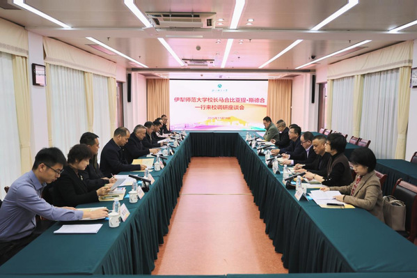 11月18日上午,伊犁师范大学校长马合比亚提·斯德合一行来浙师大交流,双方围绕高层次人才引进、教学资源共享、人才培养合作深化、科研合作对接与深化等内容举行座谈会。浙江师范大学校长邱利民出席座谈会。