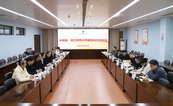 11月19日,浙师大与仙居县举行教育合作洽谈会。浙师大副校长李盛,仙居县委常委杨含呈,仙居县教育局党委书记、局长王海辉等出席洽谈会。