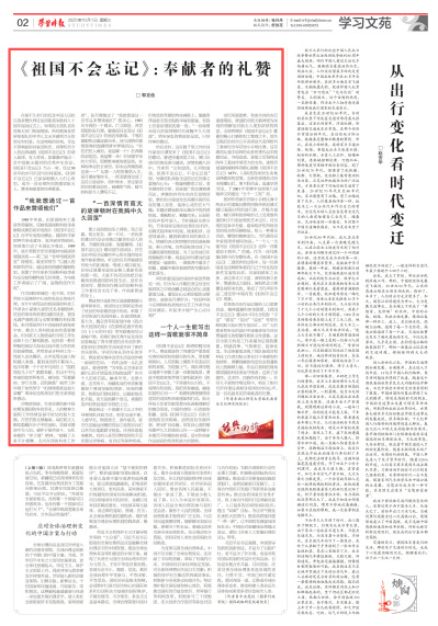 10月1日,浙江师范大学艺术学院教授、施光南音乐文化研究院院长郭克俭文章《<祖国不会忘记>:奉献者的礼赞》刊发在《学习时报》当天第2版学习文苑版面。