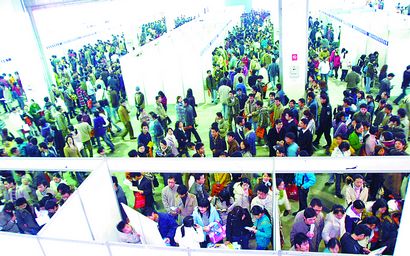 高职院校因其专业定位准确,一直颇受用人单位欢迎,湖南省2006届高职高专毕业生专场供需见面会现场出现了供需两旺的火爆场面。刘军摄(资料图片)