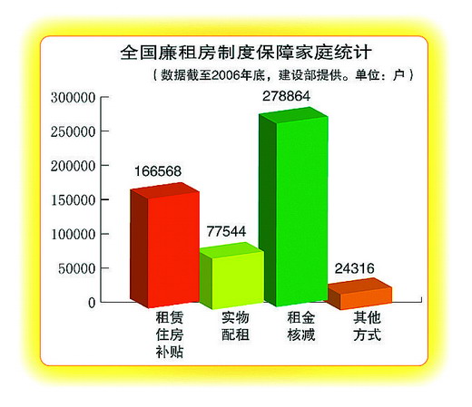 截至2006年12月20日,全国已有274个地级以上城市建立并实施了廉租房制度。