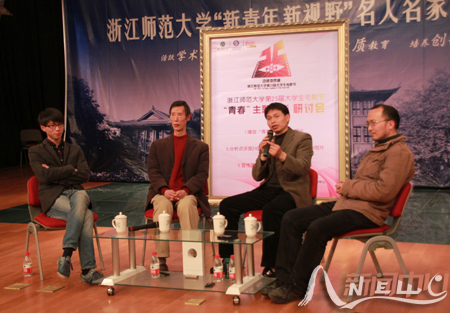(校新闻中心记者 陶非奇 金路杰 林婷婷 庄明娟)去年年底,一部青春短片《老男孩》爆红网络,引得许多观众“鸡冻不已”、“泪牛满面”。3月30日晚,在校演播厅举行的第25届大学生电影节青春主题影片研讨会上,刘宏球、黄宝富、林友桂、余韬4位老师围绕《老男孩》进行了一场深度对话。