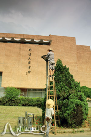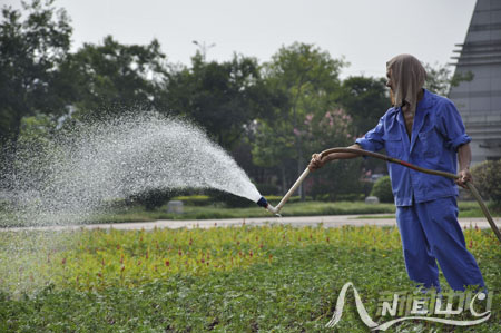 辛勤劳作,花卉装点校园。