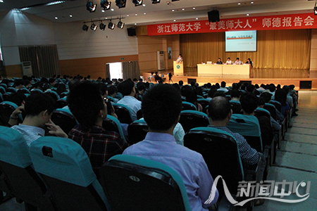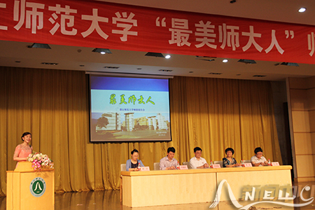 (校新闻中心学生记者团 周啁)热爱教育的老师最美、爱生如子的老师最美、爱校如家的老师最美……5月14日和21日,我校在大学生活动中心报告厅先后举行4场“最美师大人”师德报告会,孙洁、洪伟、郑逸农、常立、吴本虎、马莉、李晓梅等7名来自教学、管理一线的优秀老师报告了自己“为师”的真实经历,讲述了“最美师大人”热爱教育、热爱学生、热爱师大的动人故事。来自全校各部门(单位)、各学院的2000多名教师听取了报告会。