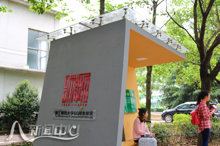 候车亭的校庆标志。