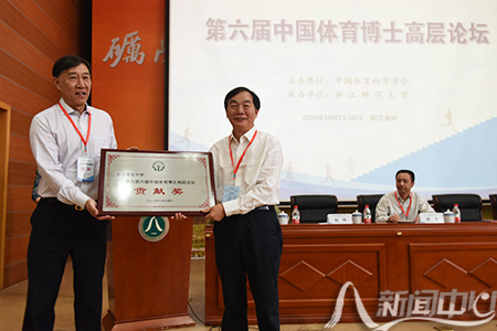 10月14日,第六届中国体育博士高层论坛在我校开幕,国家体育总局科研所所长张良、北京体育大学党委书记杨桦、上海体育学院院长陈佩杰、首都体育学院院长钟秉枢、校党委书记陈德喜等出席开幕式。论坛由中国体育科学学会副理事长祝莉主持。我校被授予承办第六届中国体育博士高层论坛贡献奖。