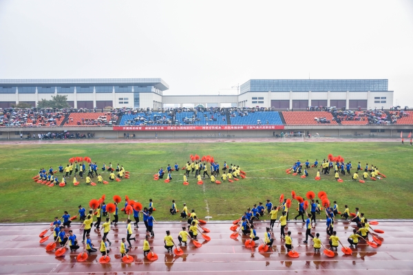 开幕式上,各学院运动员代表队整齐步入会场,口号响亮,表演纷华。团体操表演《舞动新时代》,同学们挥舞彩扇,劈叉跳跃,和着歌曲《国家》激昂的乐点,尽情舞动着,舞出了新时代浙师学生的青春活力与校园浓郁的体育文化。