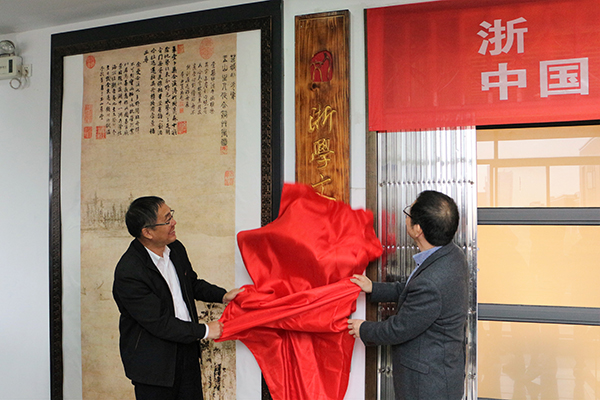 蒋承勇、蒋国俊为浙学文献馆揭牌。