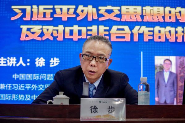 徐步在讲座中总结了习近平外交思想对中非关系六个方面的指导意义,要以建设中非命运共同体为统领;要以“真实亲诚”的理念与正确的义利观为指导;要以坚持文明多样性和发展包容性为基础;要以推进国际关系民主化捍卫多边主义和自由贸易体制为重任;要以团结抗疫、维护发展中国家利益为当务之急;要以“八大行动”为抓手,全面推进中非战略合作关系提升。