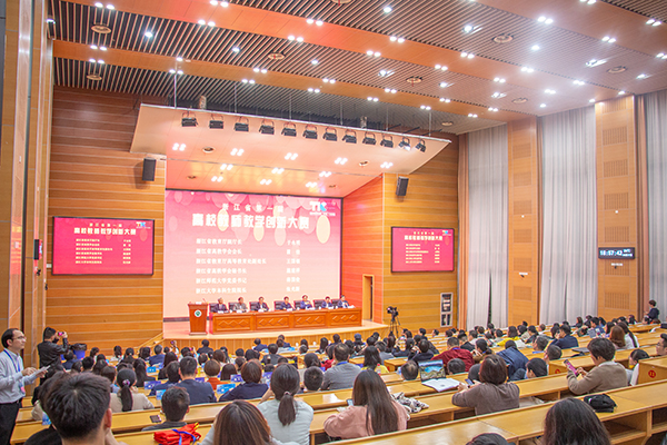 4月17日,浙江省首届高校教师教学创新大赛在浙师大举行。浙江省教育厅副厅长于永明、浙江省高教学会会长瞿佳、浙江师范大学党委书记蒋国俊出席颁奖典礼。浙师大副校长李伟健主持典礼。