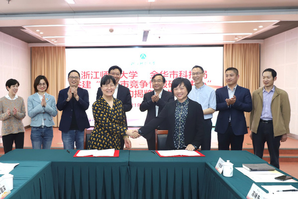 现场,金华市科技局、浙师大图文信息中心相关负责人代表双方签约。
