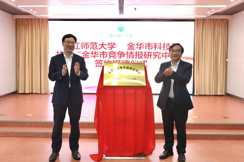 4月19日,金华市竞争情报研究中心签约揭牌仪式在浙师大行政中心多功能会议室举行。