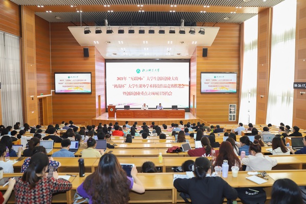 4月24日,2021年“互联网+”大学生创新创业大赛、“挑战杯”大学生课外学术科技作品竞赛推进会暨创新创业重点立项项目签约会在浙师大行政中心报告厅举行。浙师大校长郑孟状出席会议,党委副书记朱坚主持会议。