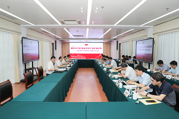 蒋国俊从“高起点开局、高标准推进、高质量拓展”三个方面介绍学校党史学习教育工作情况。他指出,在抓开局中,以上率下、上下结合,组织推动全校各级党组织扎实开展党史学习教育,掀起党史学习教育热潮;以点带面、点面结合,开展“七个一百”系列实践活动,宣传推广典型经验做法;以教促学、学教结合,成立党史宣讲团,在全校“同上一节党史课”。在抓过程中,注重基础在学,要求坚持读原著、学原文、悟原理,把深入学习习近平总书记重要讲话精神和4+1指定书目的学习落到实处;注重目的在教,积极开展以“沿着红色足迹学党史”主题,在爱国主义教育基地开展党史现场学习;注重关键在做,研究部署“我为师生办实事”实践活动,聚焦具体实事,推动学校党史学习教育走深走实。在抓成效中,聚焦全覆盖,坚持推进课程思政、师生参与全覆盖,通过课堂教学引导学生知史爱党爱国,把立德树人根本任务贯穿于党史学习教育的全过程;聚焦出成果,产出党史研究、学术成果,组织开展相关研讨会,努力讲好真实生动的“党史教育课”;聚焦谋新篇,深化校企共建、产学融合,加快推动技术成果转化,更好服务地方社会发展。