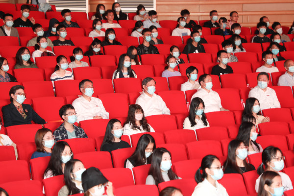 浙师大法政学院2018级法学专业学生赵雅琪宣读倡议书。她倡议青年团员们坚持党的领导,争当政治可靠的接班人,法律学子们应牢记法律宗旨,争当专业过硬的法律人;普法人员应拥抱创新变革,争当与时俱进的普法人;青年学子宜共同努力,为构建和谐法治社会贡献澎湃的青春力量。