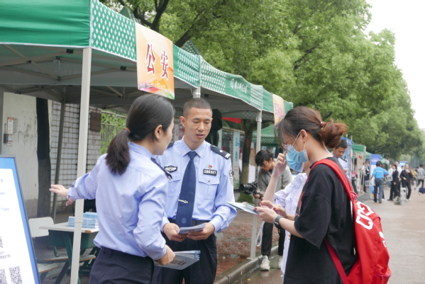 在杏园主干道上,法治宣传展示、法律咨询服务、法律知识有奖竞赛、职业体验棚等各类大型展示和互动服务展台被学生们团团围住。校园贷的水有多深?如何辨识不同类型的毒品?怎样提高反诈意识?……法治宣传展示一一为你解答。