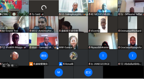 5月19日,由商务部主办,浙江师范大学承办的非洲英语国家高等教育管理研修线上培训班举行开班仪式。副校长潘慧炬出席开班仪式并讲话。来自埃塞俄比亚、肯尼亚、马拉维、莫桑比克、坦桑尼亚、赞比亚六个非洲国家的42名学员参加开班仪式。