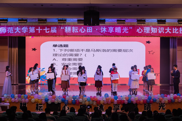 5月22日晚上,浙江师范大学“耕耘心田·沐享晴光”第十七届心理知识大比拼总决赛暨第十八届心理健康教育文化节闭幕式在大学生活动中心二楼报告厅举行。