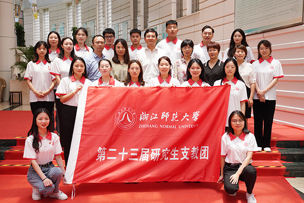 6月15日上午,浙江师范大学第二十三届研究生支教团出征仪式举行。浙师大党委副书记朱坚出席仪式,并为研究生支教团志愿者授旗。本科教学部、学工部、研工部、团委相关负责人参加活动。