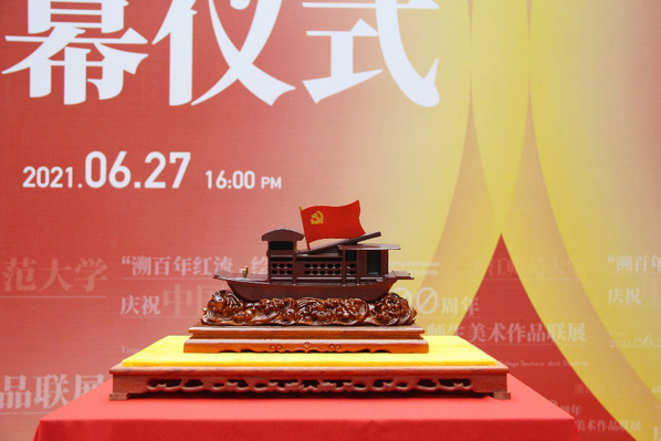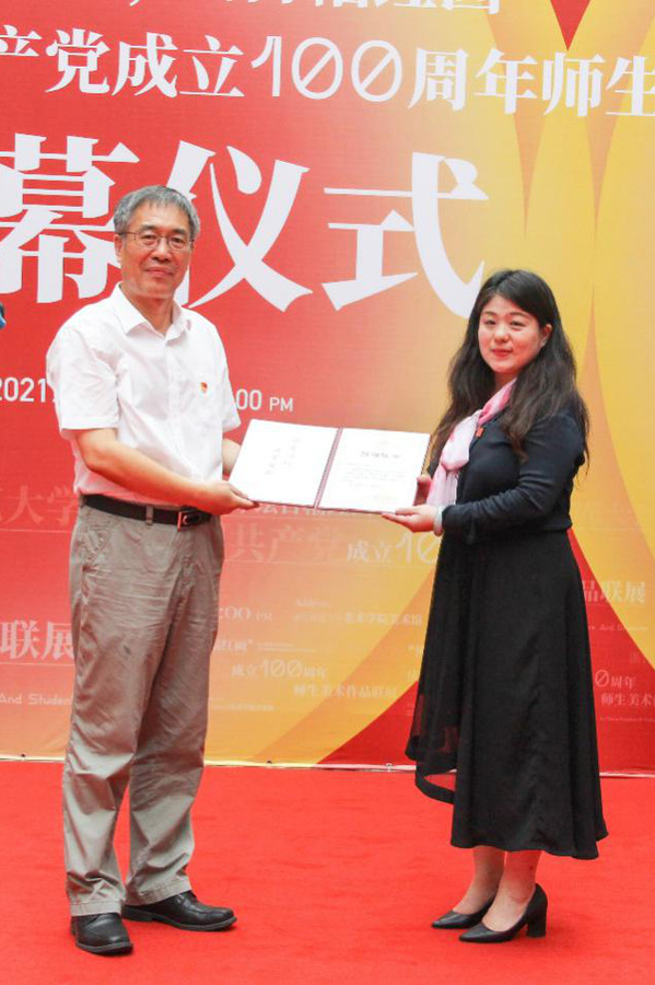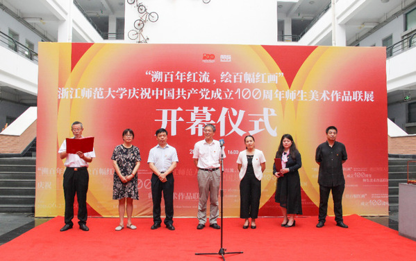 为迎接中国共产党百年华诞,感悟初心力量,凝聚奋进力量。6月27日下午,“溯百年红流,绘百幅红画 ”浙江师范大学庆祝中国共产党成立100周年师生美术联展在美术学院美术馆开幕。浙师大党委书记蒋国俊,党委委员、组织部、统战部部长吕迎春,党委委员、宣传部、教师工作部部长朱毅峰出席开幕式。