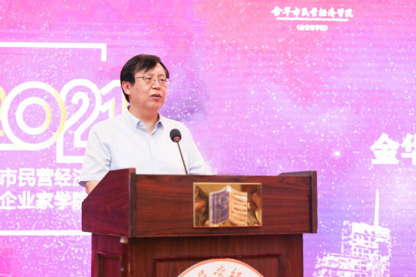 邢志宏强调,金华是民营经济的重要发祥地,民营企业一直是金华经济发展的主力军。金华市委市政府始终高度重视民营经济发展,建立了市级领导联系重点民营企业制度,出台了支持民营经济高质量发展的实施意见,部署了民营经济强市“四大行动”“九大工程”,推动民营经济持续健康发展。金华市民营经济学院(企业家学院)是金华市政府与浙江师范大学深化战略合作的最新成果,也是今后校地合作、服务民营企业、促进民营经济高质量发展的重要窗口。邢志宏指出,刚刚闭幕的金华市委七届九次全会围绕着忠实践行“八八战略”、奋力打造“重要窗口”的主题主线,作出了打造高质量发展,推进共同富裕先行示范的浙中板块重大部署。新的征程已经开启,光荣使命催人奋进,希望广大企业家练好内功,大力弘扬企业家精神;希望企业家协会主动作为,充分发挥服务、引领、凝聚企业家的作用,用好民营经济学院(企业家学院)这个平台;期盼浙师大充分发挥智库作用,培育具有战略眼光和创新精神的领军型企业家队伍,为打造高质量发展推进共同富裕先行示范的浙中板块作出新的更大贡献。