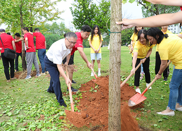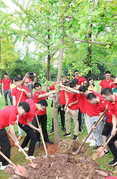 仪式结束后,校领导与新进教师一同在学校“杏坛”种下银杏树,纪念执教生涯的开始。新进教师还集体前往校史馆、非洲博物馆、产教融基地等地参观学习。