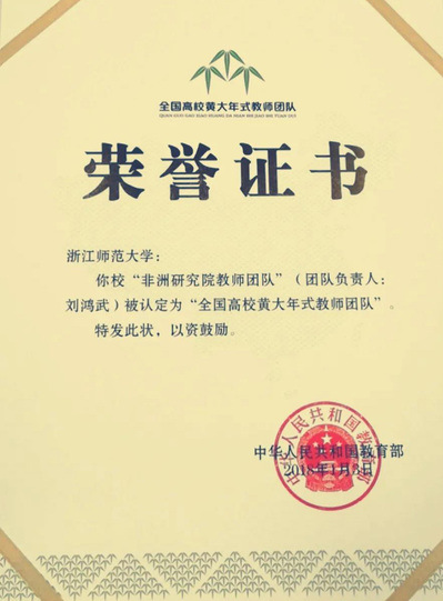 作为全国高校首批黄大年式教师团队,“浙江师范大学非洲研究团队”负责人刘鸿武教授表示,“我和我的同事们都深感自豪,深感党和人民对于教师这一特殊群体和职业的尊敬、重视和期待,也深感我们责任的重大和工作的光荣。”