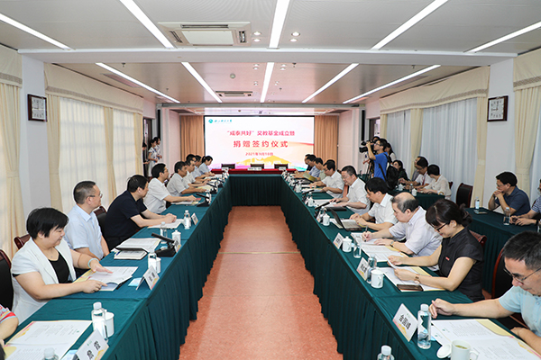 金华慈善总会、金华成泰农商银行相关负责人,学校相关职能部门、学院负责人、教师代表等参加签约仪式。