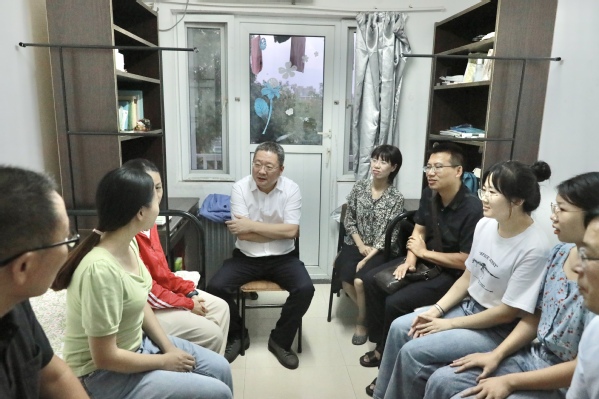 在与教师教育学院的研究生新生交流时,蒋国俊详细了解了同学们的学科背景,鼓励研究生多读书、多思考,提早做好学术规划,注重培养自身独立研究的能力,关注国家命运和社会发展需求。在物电学院新生寝室,蒋国俊寄语同学们踏实学好专业知识,积极参与丰富的校园文化活动,保持科学家精神,勇于在实践中探索真理。