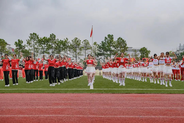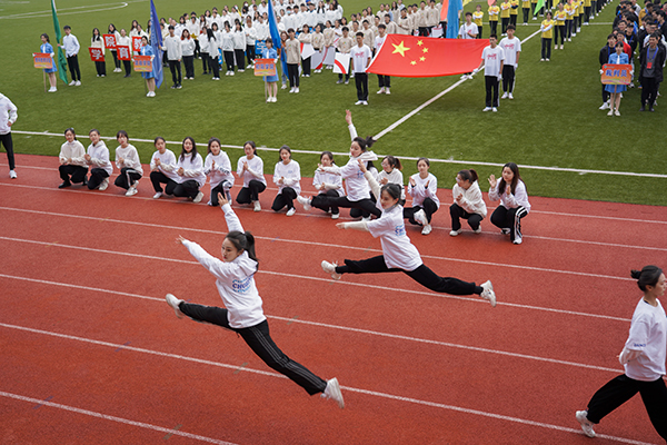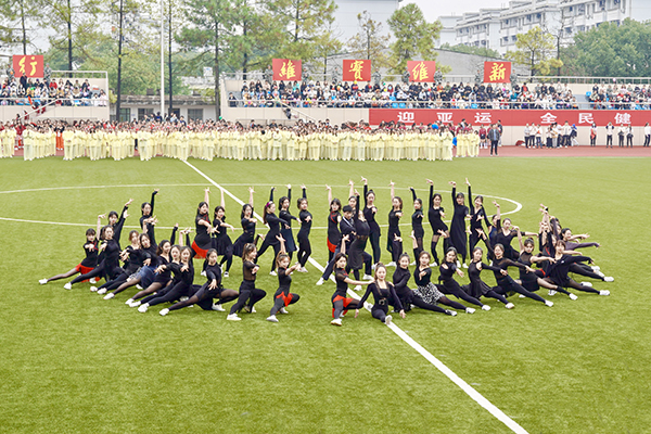 其后的健美操热情洋溢,同学们以跃动的步伐响应着全**动的号召。