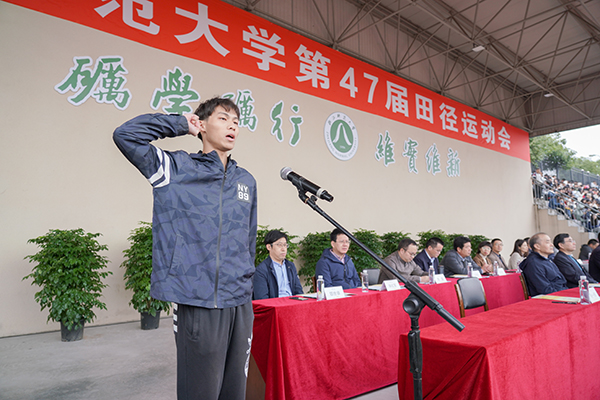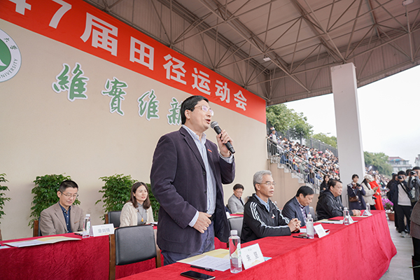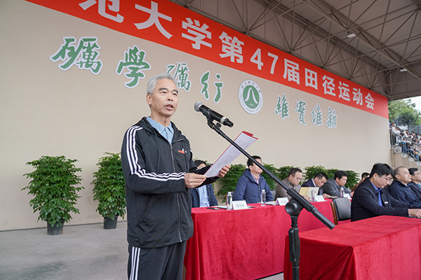 朱坚宣布浙江师范大学第47届田径运动会开幕。