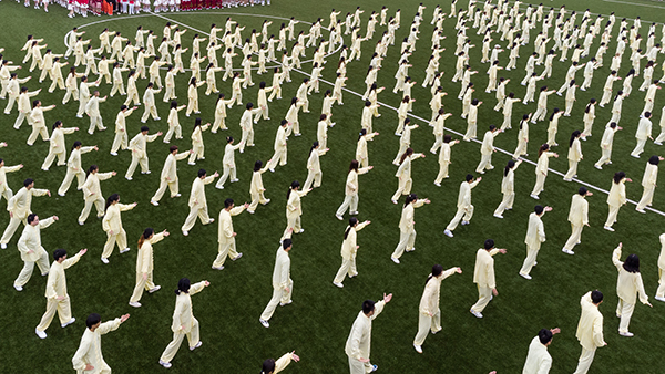 由300名学子带来的太极拳创意表演《少林英雄》,场面宏大,挥洒自如,展示出太极拳连绵不断、刚柔并济的拳术风格,彰显了青年学子对传统运动的传承。