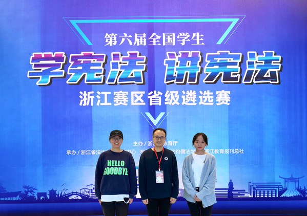 近日,在第六届全国学生“学宪法讲宪法”浙江赛区省级遴选赛中,浙师大法政学院学生陈胤含、沈鑫奕两位同学分别获得省赛个人演讲特等奖和知识竞赛一等奖,且陈胤含同学入选浙江代表队将继续参加国赛,姜国平、王茂盛分别获个人演讲指导老师特等奖和知识竞赛指导老师一等奖。