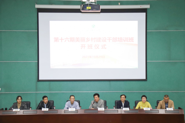10月29日上午,武义县大田乡第十六期美丽乡村建设干部培训班在浙师大开班。原金华市常务副市长、金华市人大常委会副主任,浙师大特聘教授、乡村振兴研究院院长金中梁,浙师大副校长张根福出席仪式。