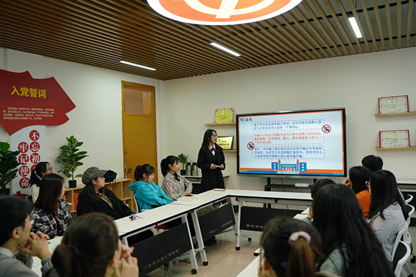 这是“心盟”宣讲团深入学院的首场宣讲,后续他们将在全校范围内广泛开展反诈宣讲活动。浙师大“心盟”宣讲团是一支联合金华市婺城区联席办组建起的专业化反诈宣教队伍,由50名具有法律基础、热心公益的大学生党员组成,在经过2个月的专业培训后,个个都成了“反诈宣教小达人”。