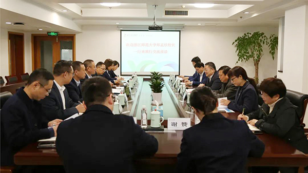 金华成泰农商银行班子成员、相关部室及支行负责人参加座谈,浙师大相关职能部门负责人陪同走访。
