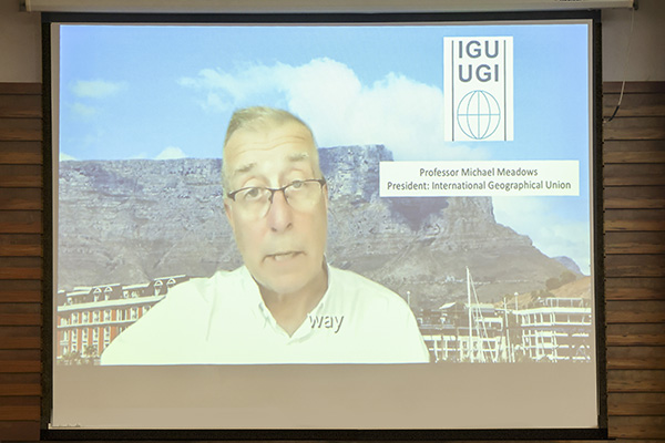 Michael Meadows院士在致辞中表示,在疫情不稳定、全球气候持续变化以及生物多样性减少的背景下,世界比以前任何一个时期都更需要合作。中国积极推动世界的和平与发展,在推动中非经济和科技发展等方面都做出了十分重要的努力。他期待中非地理、环境领域的科学家共同努力,推动中非科技合作。