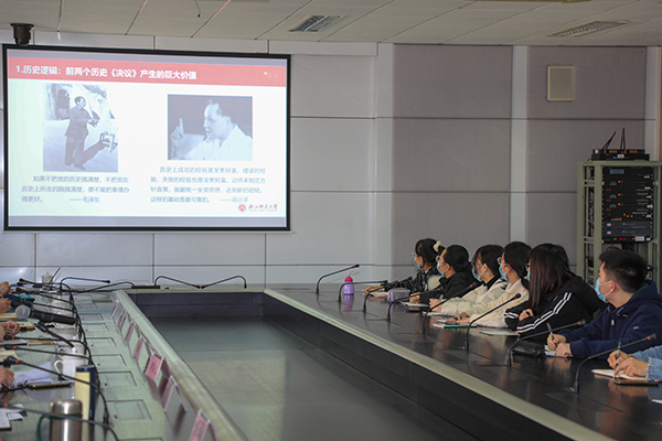 为深入学习宣传贯彻党的十九届六中全会精神,根据省委“六讲六做”大宣讲活动要求和学校党委部署,12月2日,浙江师范大学党委书记蒋国俊教授深入物理与电子信息工程学院,以《勿忘昨天的苦难辉煌,无愧今天的使命担当,不负明天的伟大梦想》为题向师生宣讲党的十九届六中全会精神。