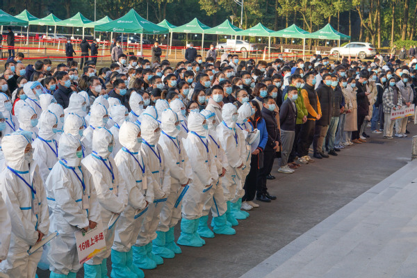 本次核酸检测演练与第4轮全员核酸抽测工作合并开展,检测人数约5700人,按照每半小时完成检测约1000人,历时3小时完成。现场共设有5个登记处和15个检测区,各单位、各部门工作人员全程待命,志愿者们身穿防护服在一旁做好引导,被检测的师生员工佩戴口罩,保持一米线距离,依次进行核酸检测,整个演练工作井然有序、紧促高效。志愿者司宁同学感叹道:“能作为志愿者参与演练我觉得很有意义,现场大家分工明确,每个工作人员都各司其职,效率很高。”