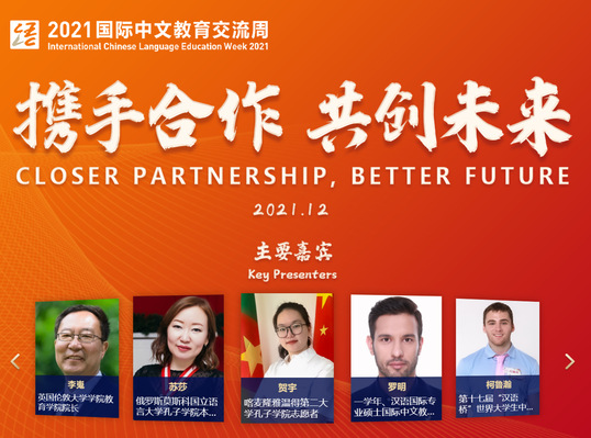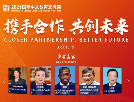 12月11日至20日,以“携手合作、共创未来”为主题的2021年国际中文教育交流周正式举行,本届交流周由教育部中外语言交流合作中心、世界汉语教学学会、中文联盟主办,北京外国语大学、北京语言大学、华东师范大学、浙江师范大学等17家院校、机构联合承办,旨在推动中外语言文化交流实现多样化、高质量发展,为世界文明互鉴和民心相通注入新活力、新动力。