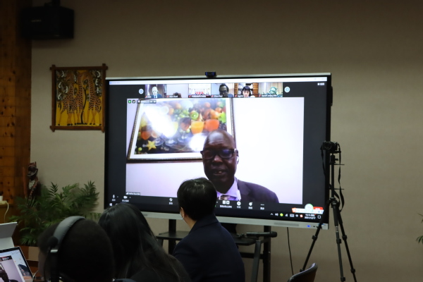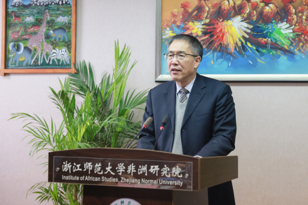 蒋国俊代表学校向出席本次会议的嘉宾、学者表示欢迎,并介绍了浙江师范大学对非研究和对非工作的成效。他表示,浙师大非洲研究院自2007年建院以来,在实践中形成了“学科建设为本体、智库服务为功用、媒体传播为手段、扎根一线为前提、中外合作为路径、协同创新以赋能”的区域国别研究学科推进模式,入选教育部首批区域和国别研究基地,是中国区域国别研究领域一支重要的推进力量。蒋国俊指出,本次论坛既是双方对中非合作论坛第八届部长级会议精神的迅速响应与贯彻,也是继续推动和繁荣双方人文学术交流的具体实践,希望中国与南苏丹学术界以本次会议为契机,进一步加强沟通对接,全力支持中非共建“一带一路”,为构建更加紧密的中非命运共同体贡献智慧和力量。