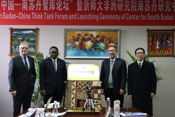 会议期间,浙江师范大学非洲研究院南苏丹研究中心正式成立,哈那菲·詹姆斯·基拉、蒋国俊、刘鸿武、浙江师范大学非洲研究院高级研究员格特·格罗卜勒共同为中心揭牌。刘鸿武担任中心主任,梅拉·鲁特·比尔担任中心南苏丹方执行主任。