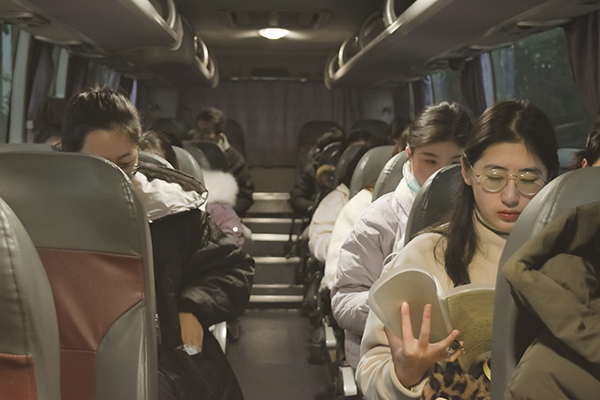 考生在送考车上看书。浙师大融媒体中心记者 章祝嘉 摄