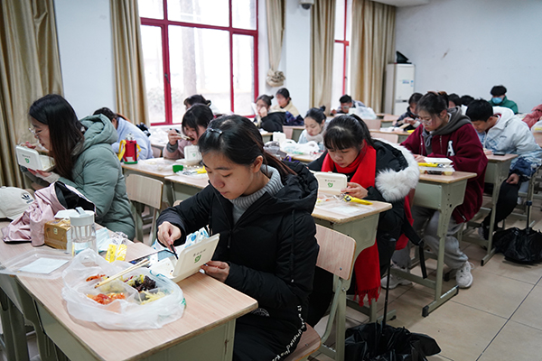 外校考生在临时就餐点就餐。浙师大融媒体中心记者 解雨欣 摄